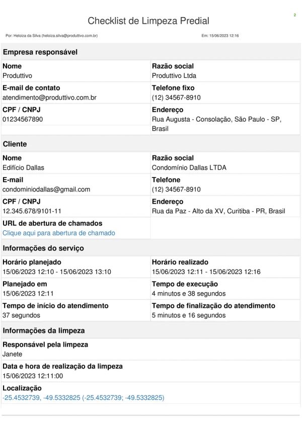 Aprimore a comprovação dos serviços com o modelo de checklist de limpeza predial digital. Modelo personalizável com questões de verificação, registros fotográficos acompanhados de marcação de data e hora em que foram tirados, assinatura digital e mais. Experimente agora!