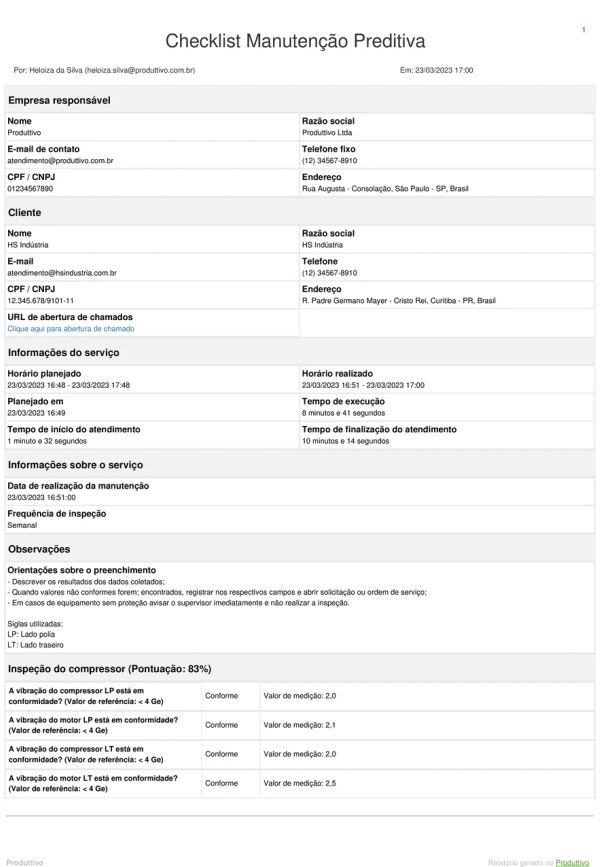 Check list de manutenção preditiva rápido, simples e profissional. Registre a conformidade das inspeções, inclua evidências fotográficas do serviço e colha assinatura digitais. Questões personalizáveis!
