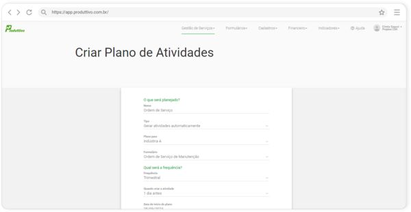 Agende automaticamente atividades recorrentes de acordo com a periodicidade de realização, incluindo o modelo de ordem de serviço que deve ser preenchido.
