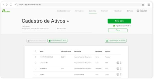 No software de ordem de serviço do Produttivo as informações da empresa, clientes e ativos são preenchidas automaticamente, sem demandar qualquer esforço dos técnicos.