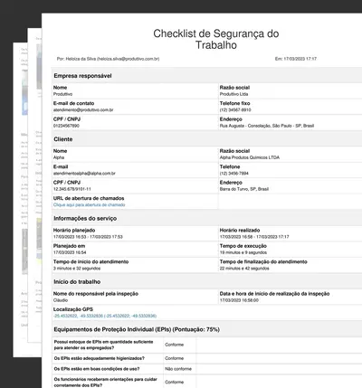 No aplicativo de manutenção do Produttivo os técnicos podem preencher formulários e checklists, mesmo offline, utilizando recursos como: fotos com marcação de data e hora, preenchimento por voz, pontuação para não conformidades, assinatura digital, entre outros recursos.Modelos prontos e personalizados de checklists!