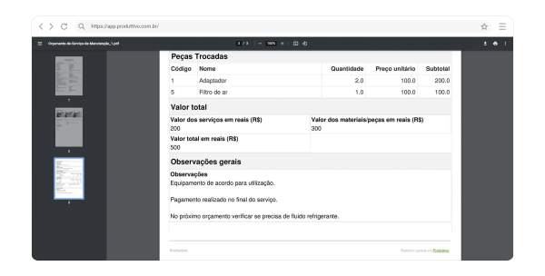 No software de manutenção do Produttivo é possível gerar vários tipos de relatórios, checklists e laudos.