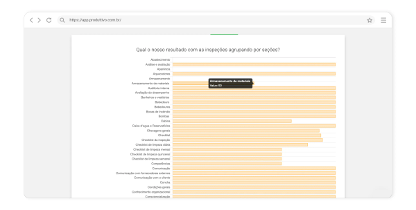 Visualize indicadores fáceis, como volume de não conformidades por equipamento, pontuação atingida nas inspeções e manutenções, tempo de atendimento e outros.